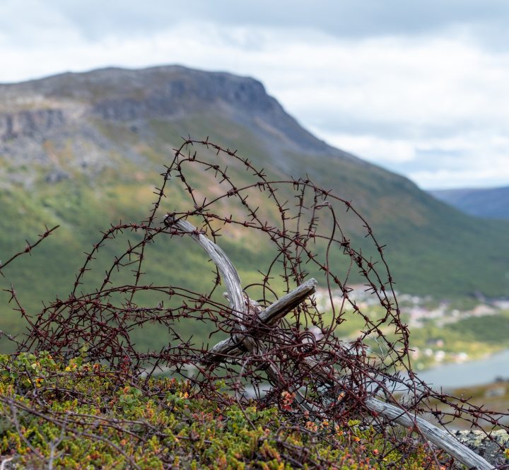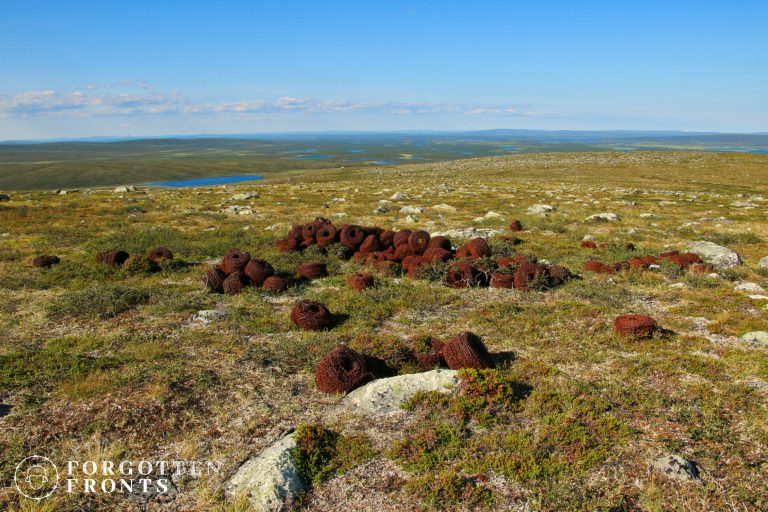 Saksalaisten hylkäämiä piikkilankakeriä Kalkkoaivi-tunturin huipulla. Kilkkaa kuvaa lukeaksesi lisää!